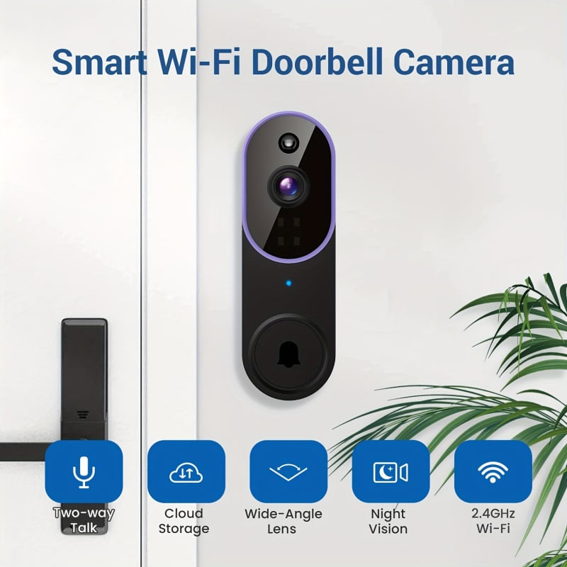 This smart video doorbell features crystal-clear 1080P video and AI human detection, filtering out false alarms like passing vehicles. Its advanced night vision system with six infrared lights ensures you never miss a visitor or parcel, day or night. Upon detecting movement, your mobile receives instant notifications. Two-way audio lets you converse with visitors or couriers from anywhere. Installation is remarkably simple—simply connect to 2.4G WiFi, mount the doorbell, and it's ready to use.